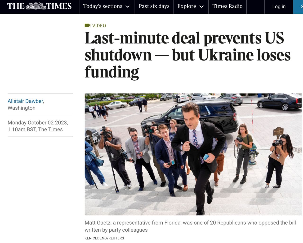 09.30 У Конгресі стає все складніше узгоджувати виділення допомоги Україні, йдеться у статті Time за підсумками ухвалення тимчасового закону про бюджет.