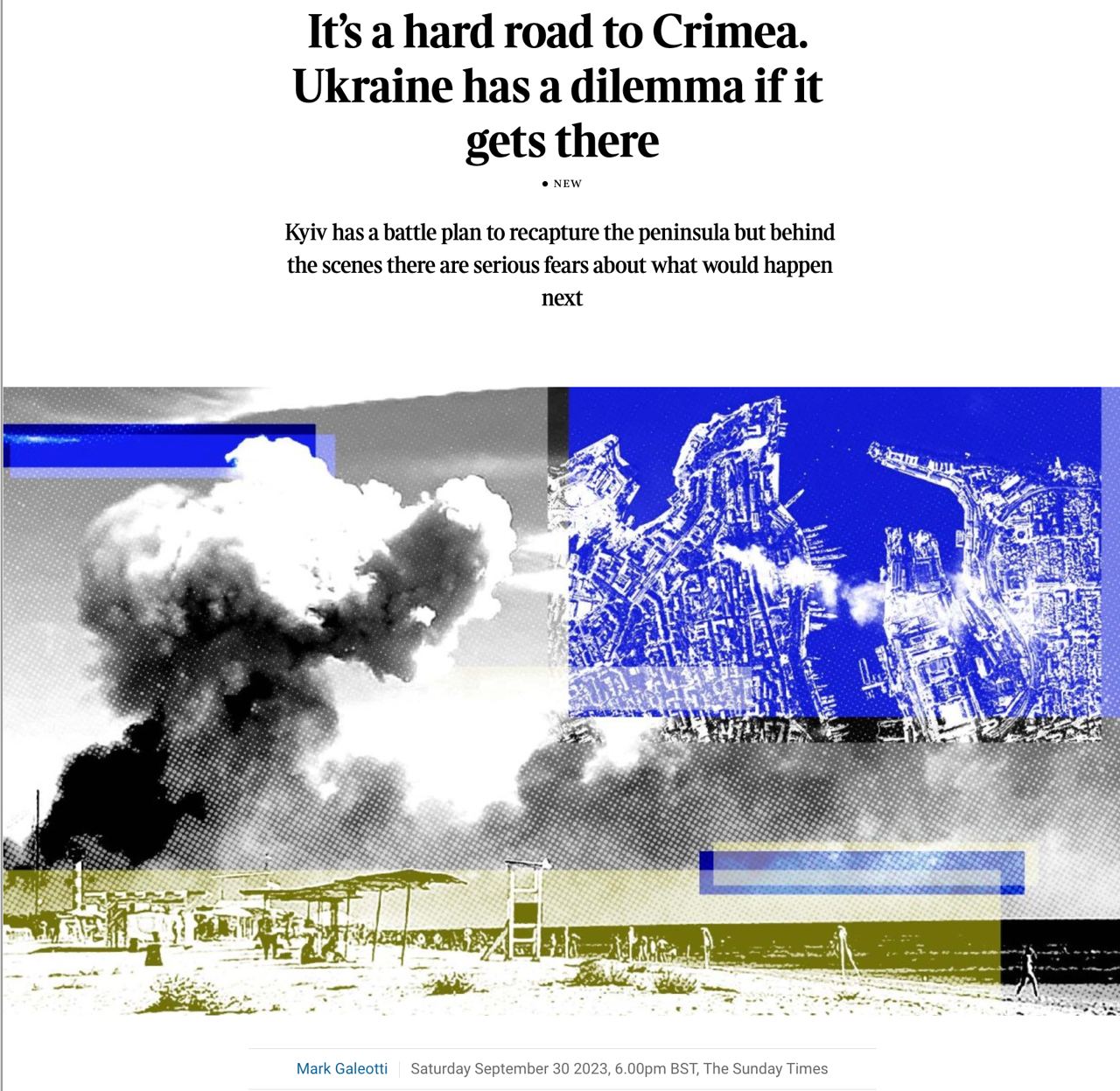 The Times пише, що Україна має план військового повернення Криму шляхом облоги, проте видання сумнівається, що Україні до зими вдасться хоча б наблизитися до артилерійської досяжності ліній постачання півострова.