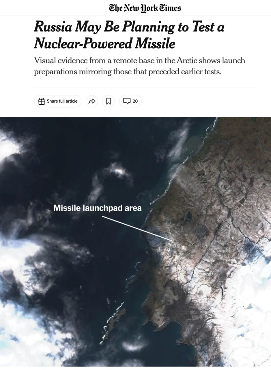 Такий висновок робиться на підставі візуальних даних віддаленої бази в Арктиці. Поточна ситуація там повторює підготовку до попередніх випробувань "Буревісника" або SSC-X-9 Skyfall у 2017 та 2018 роках.