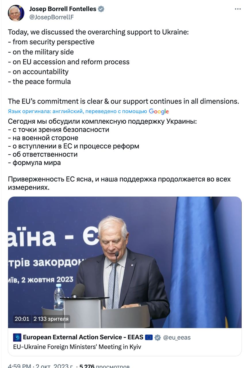 09.45 У Києві сьогодні відбудеться Рада міністрів закордонних справ країн ЄС, повідомила голова європейської дипломатії Жозеп Боррель.