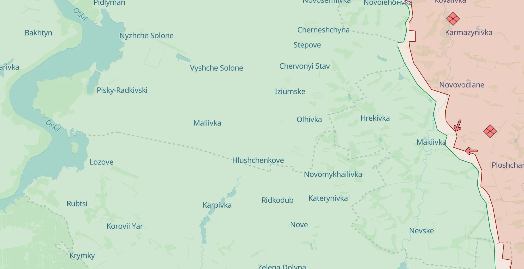 На Куп'янському та Лиманському напрямках росіяни продовжують атакувати. За даними Генштабу – у районах населених пунктів Сіньківки та Іванівки Харківської області, південніше – біля Макіївки.