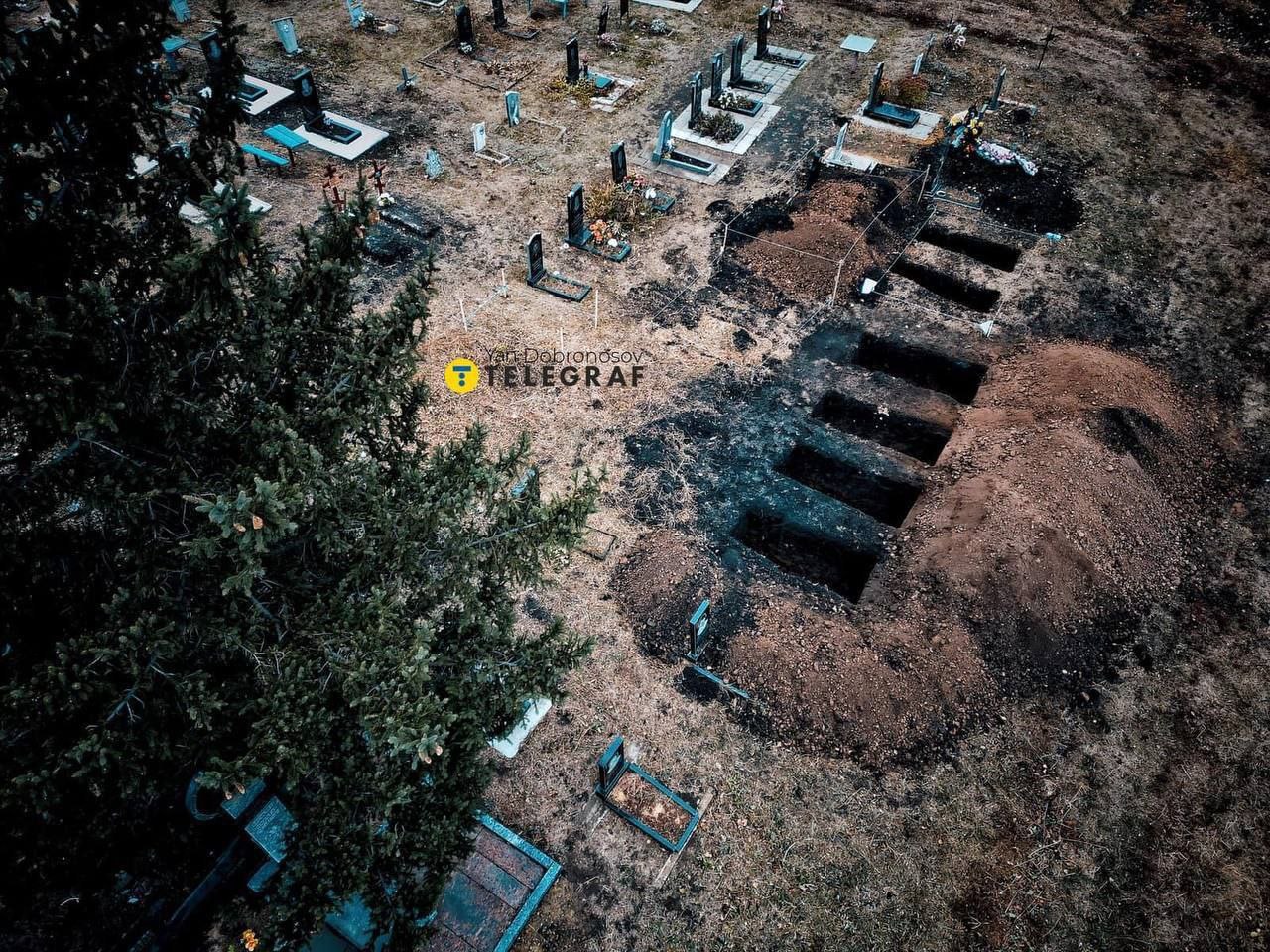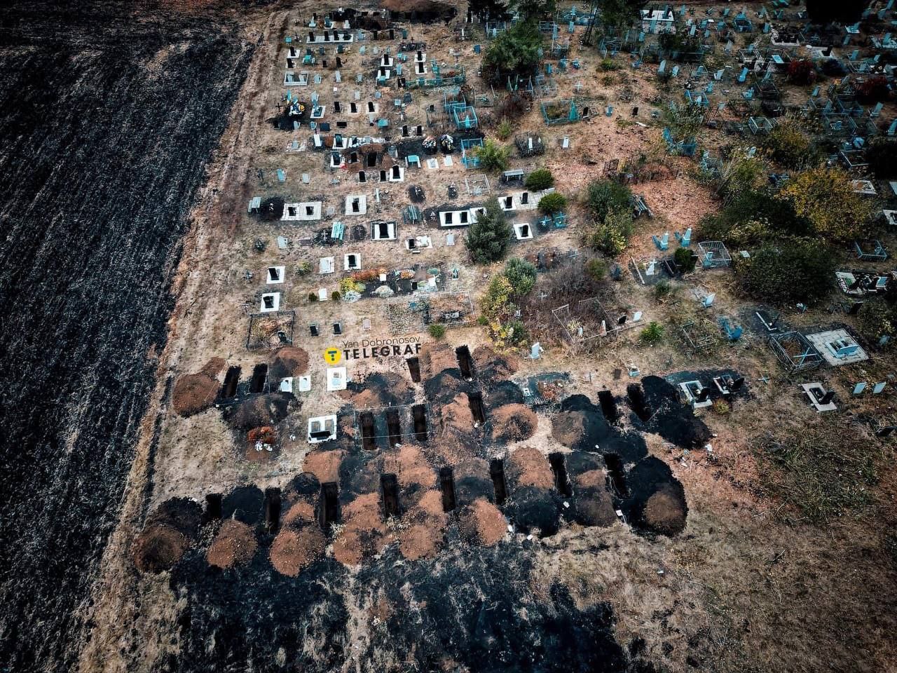 08.33 Кадри свіжих могил в українському селі Гроза під Куп'янськом, де 51 особа загинула на поминках.