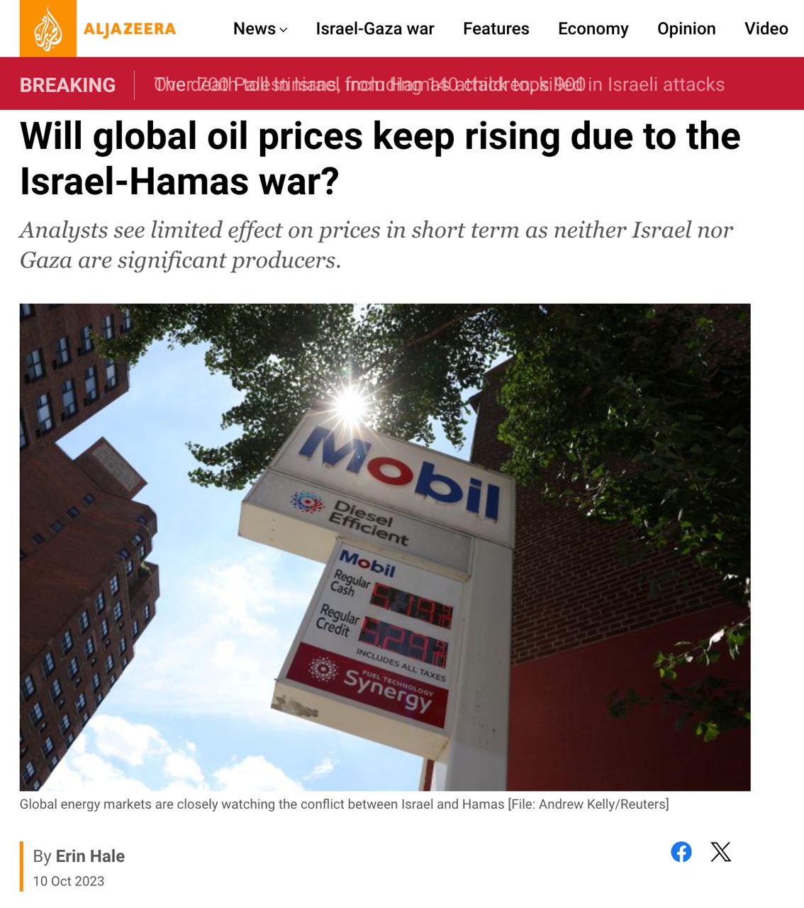 Поки що конфлікт не зачіпає безпосередньо нафтовидобувні країни, і короткостроковий ризик для поставок вважається невеликим. Багато залежатиме від залучення до конфлікту Ірану та "Хезболли".