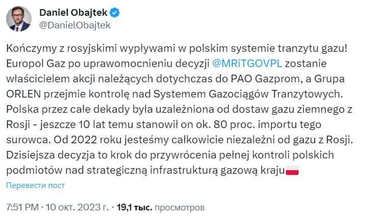 Глава концерну також додав, що з 2022 року Польща є повністю незалежною від газу РФ. Сьогоднішнє рішення є кроком до поновлення повного контролю польських підприємств над стратегічною газовою інфраструктурою своєї країни.