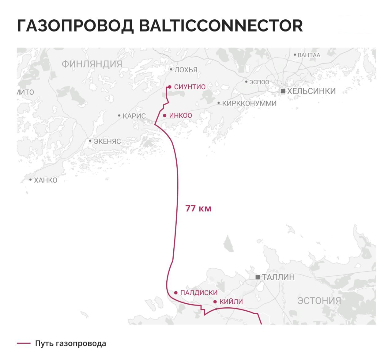 Газопровід Balticconnector з'єднує газотранспортні мережі Фінляндії та Естонії. Його побудували та запустили у 2019 році, щоб створити єдиний газовий ринок у регіоні та надати Фінляндії доступ до латвійських сховищ природного газу.