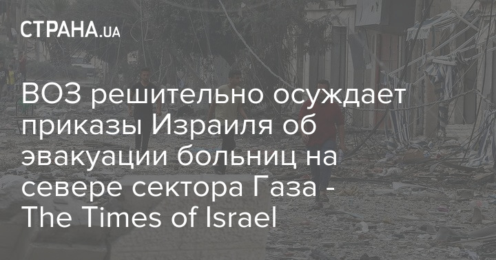 ВООЗ рішуче засуджує накази Ізраїлю про евакуацію лікарень на півночі сектора Гази - The Times of Israel