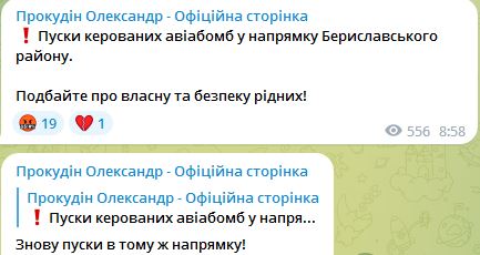 09.00 У Херсонській області повідомляють про пуск керованих авіабомб Бериславським районом.
