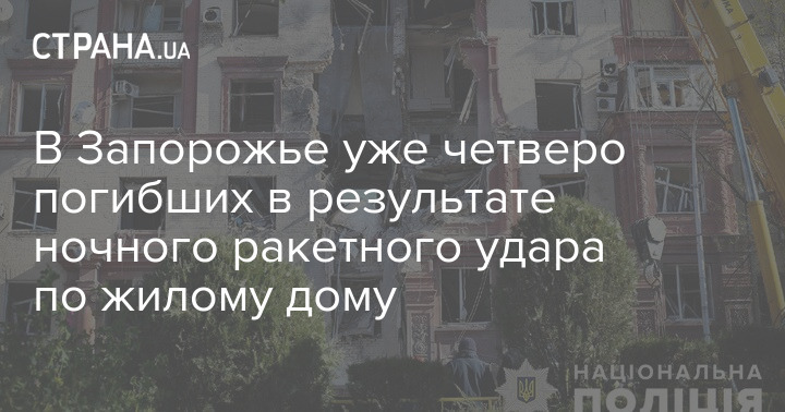У Запоріжжі вже четверо загиблих внаслідок нічного ракетного удару по житловому будинку