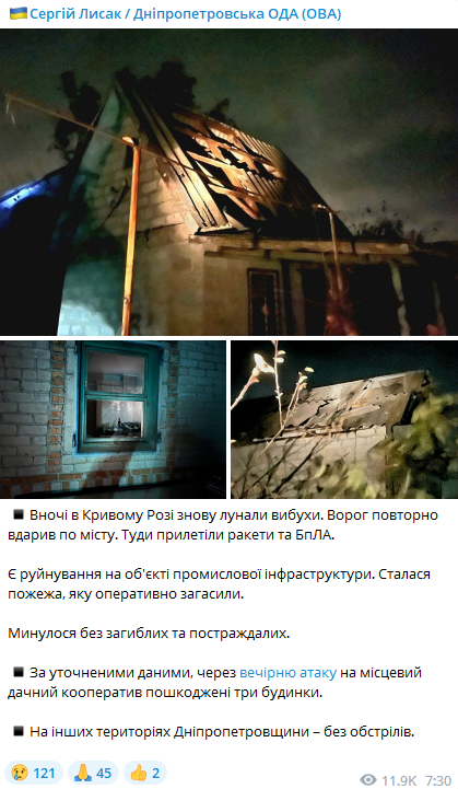 Вночі, 21 жовтня російські військові повторно вдарили з дронів-камікадз та ракет Кривого Рогу.