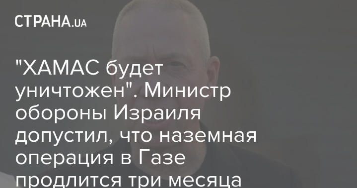"ХАМАС буде знищено". Міністр оборони Ізраїлю припустив, що наземна операція в Газі триватиме три місяці