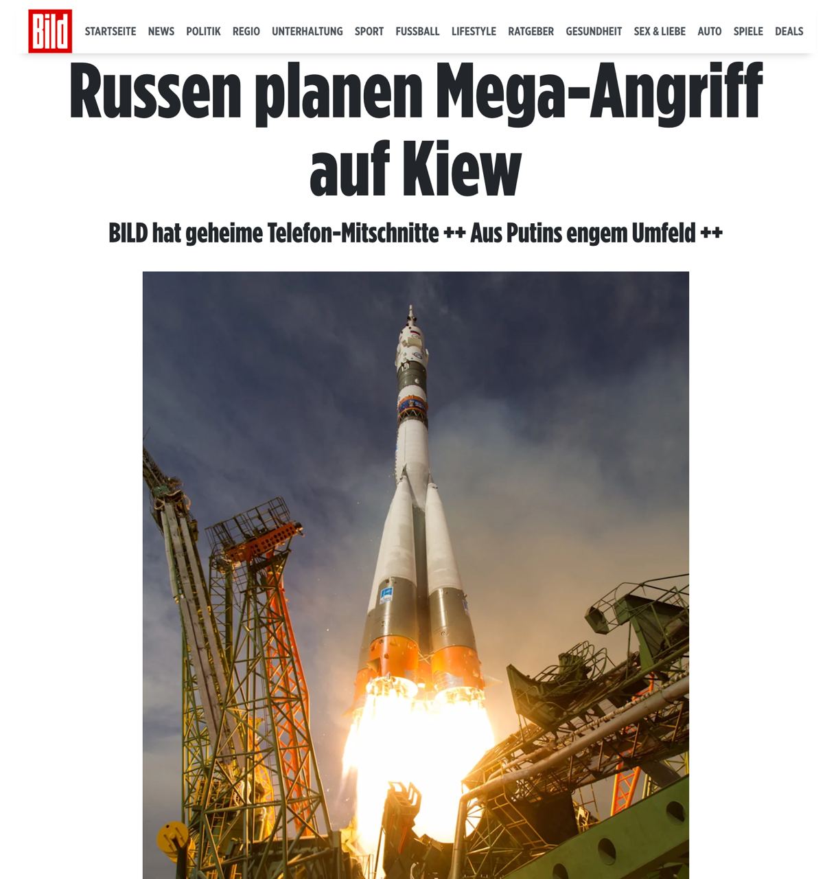15.10 У РФ вивчають можливість удару великим містом України космічною ракетою, начиненою вибухівкою, повідомляє BILD.