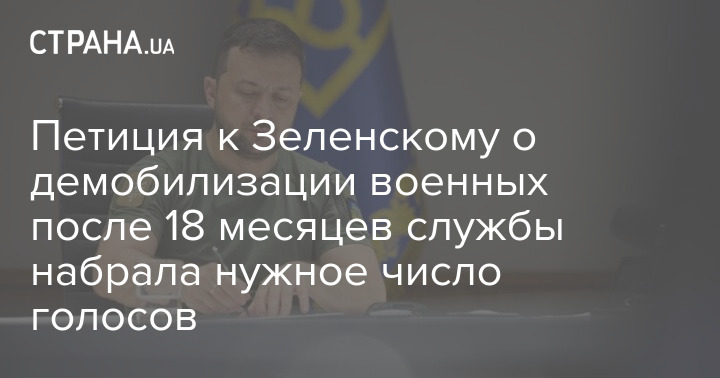 Петиція до президента України Володимира Зеленського про демобілізацію військових після 18 місяців служби набрала понад 25 тисяч голосів.