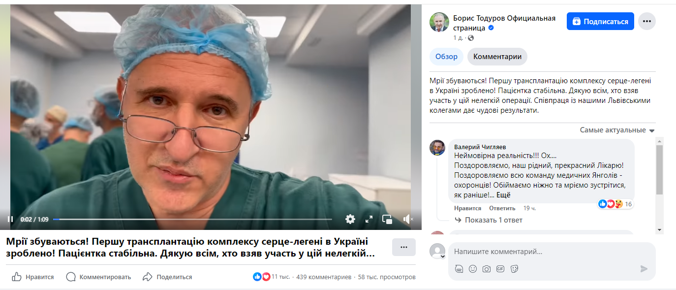 "Перша трансплантація комплексу серце-легкі в Україні зроблена! Пацієнтка стабільна. Дякую всім, хто взяв участь у цій нелегкій операції", - зазначив він.