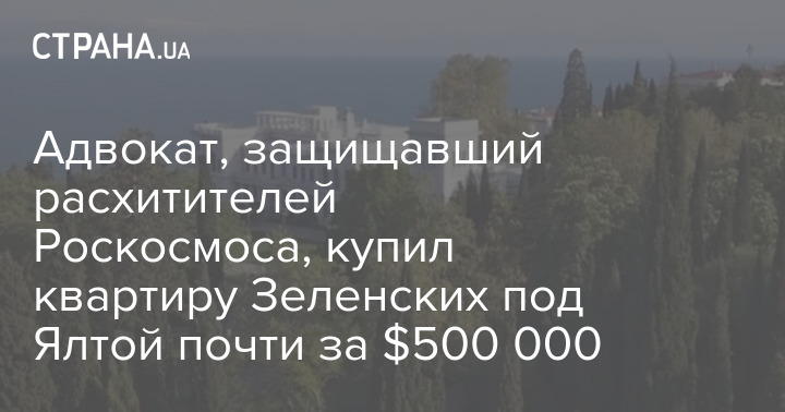 Адвокат, який захищав розкрадачів Роскосмосу, купив квартиру Зеленських під Ялтою майже за $500 000