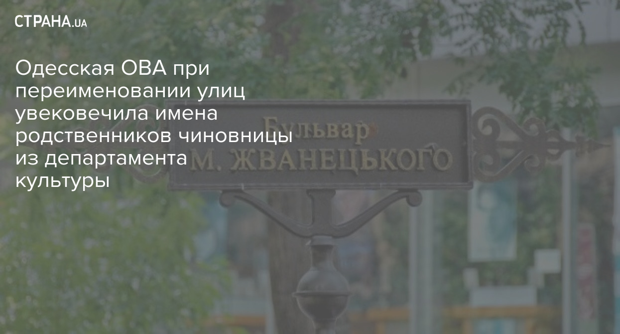 Одеська ОВА під час перейменування вулиць увічнила імена родичів чиновниці з департаменту культури