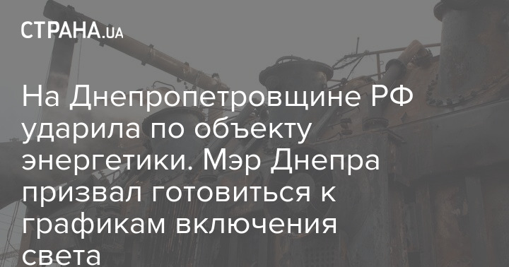 На Дніпропетровщині РФ вдарила по об'єкту енергетики. Мер Дніпра закликав готуватися до графіків включень світла