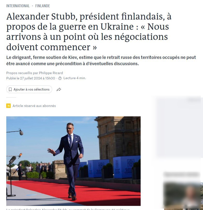 Про це фінський політик сказав в інтерв'ю газеті Le Monde.