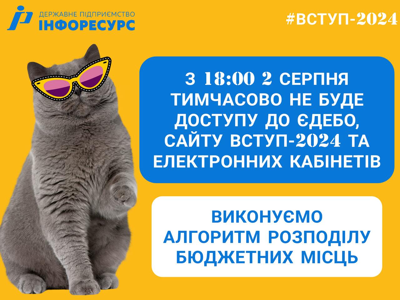 Сайт "Вступ-2024", електронний кабінет вступників, електронну базу з питань освіти закрито з 18:00 сьогоднішнього дня. Коли їх відчинять, не повідомляється.