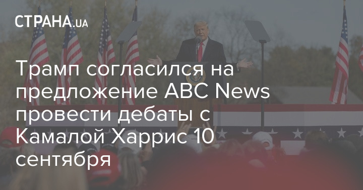 Кандидат у президента США Дональд Трамп заявив, що погодився на пропозицію ABC News провести дебати з віце-президентом Камалою Харріс 10 вересня.