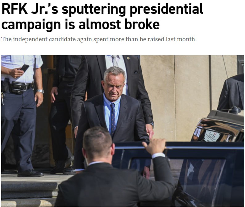 Politico пояснює, що президентська кампанія Роберта Ф. Кеннеді молодшого стикається з важким фінансовим становищем.