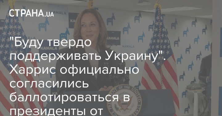"Буду твердо підтримуватиму Україну". Харріс офіційно погодилися балотуватися в президенти від демократів