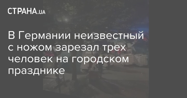 У німецькому місті Золінгені на заході країни невідомий із ножем зарізав трьох людей на міському святі. Нападнику вдалося втекти.