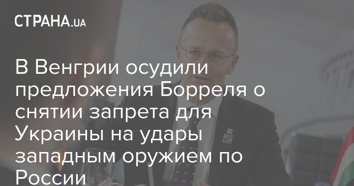 Глава МЗС Угорщини Петер Сійярто обурився пропозиціями глави європейської дипломатії Жозепа Борреля щодо зняття обмежень щодо застосування Україною західної зброї та санкцій проти ізраїльських міністрів.