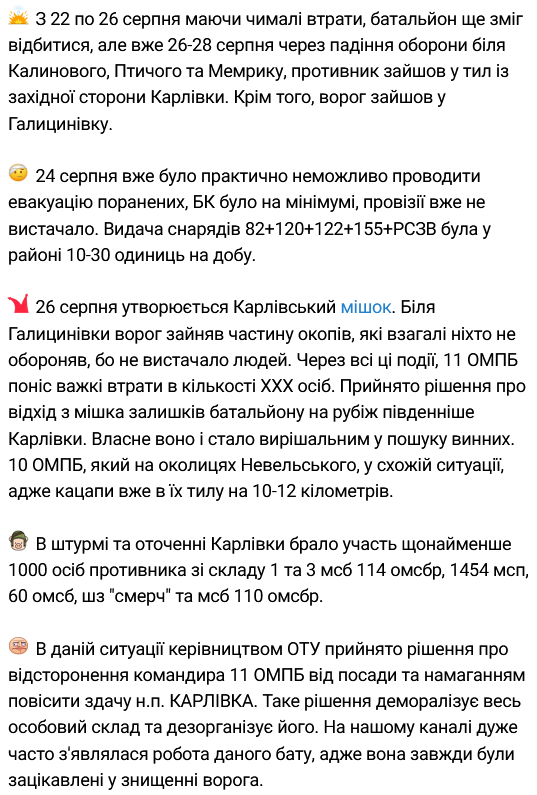 17:51 Командування ОТГ "Донецьк" звинуватило у втраті Карлівки на Покровському напрямку бійців та комбата 11-го мотопіхотного батальйону 59-ї бригади ЗСУ.