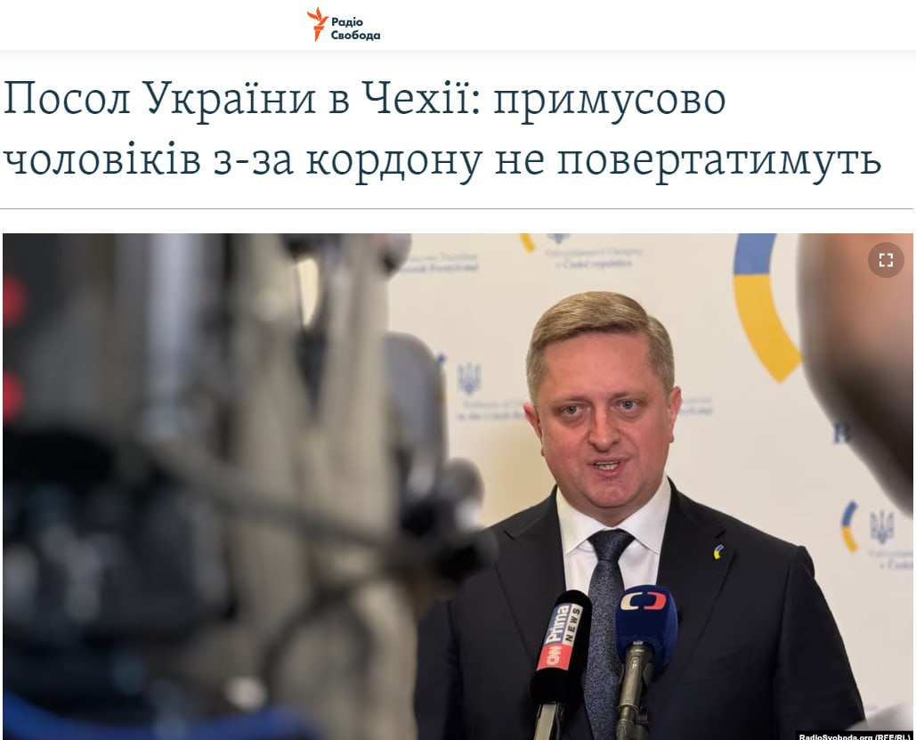 Раніше глава МЗС Чехії Липавський заявив, що його країна не підтримує українських чоловіків, які намагаються втекти від мобілізації, сидячи за кордоном. Також він наголосив, що можливості його країни обмежені, коли йдеться про примусове повернення українців на Батьківщину.