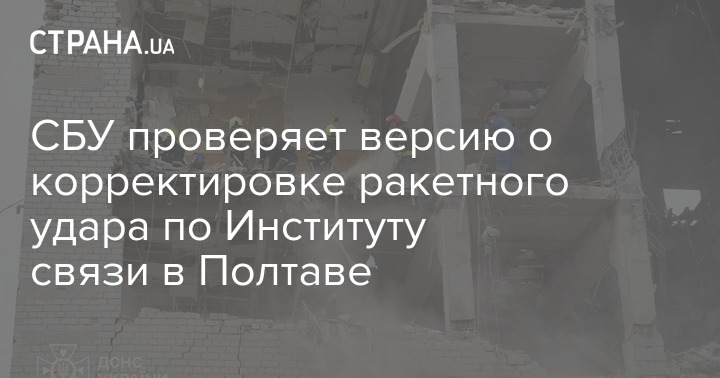 Служба безпеки України перевіряє версію про коригування ракетного удару по Інституту зв'язку у Полтаві. Про це заявив начальник полтавського управління СБУ Костянтин Семенюк під час брифінгу.
