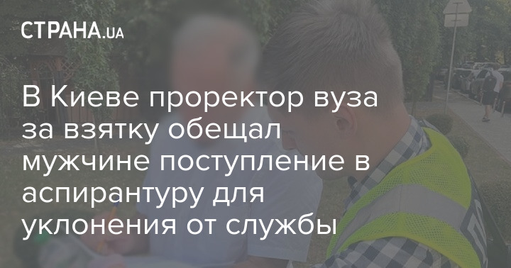 Проректора київського вишу затримано на хабарі в 2000 доларів, за які обіцяв абітурієнту вступ до аспірантури для ухилення від мобілізації.