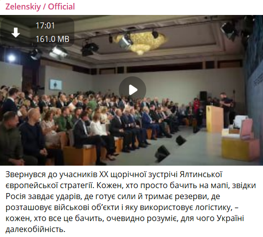 На цьому наголосив президент України Володимир Зеленський під час XX щорічної зустрічі Ялтинської європейської стратегії.