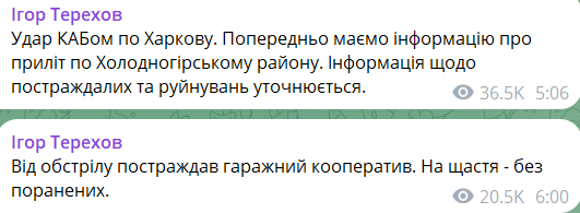 У Харкові вночі росіяни вдарили КАБом по Холодногірському району. Про це повідомляє мер Ігор Терехов.