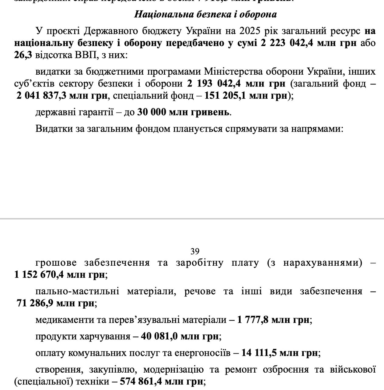 У документі зазначено, що загальні витрати на сектор оборони становитимуть 2,22 трильйони гривень. З них майже половина - 1,1 трлн - піде на зарплати та майже 575 мільярдів - на виробництво, закупівлю та ремонт військової техніки.