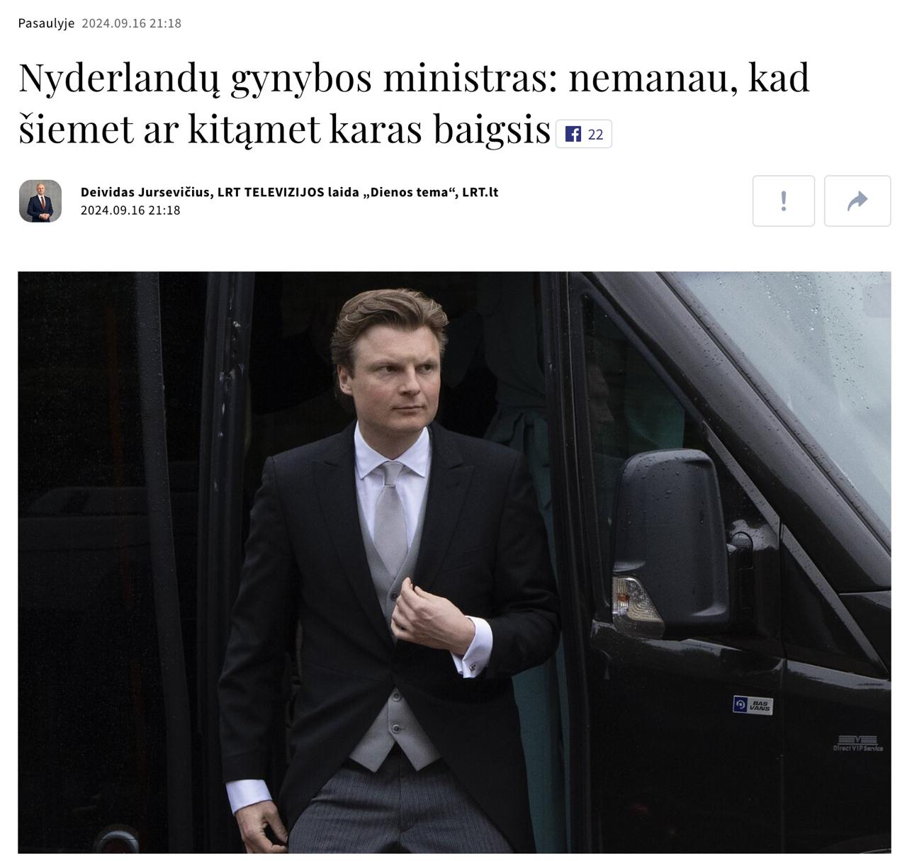"Я не думаю, що війна закінчиться цього року, не думаю, що вона закінчиться і наступного року. Звичайно, нам необхідно надати Україні якомога більшу військову підтримку, але нам потрібно бути реалістами, бо ситуація на полі бою дуже складна". Це означає, що ми повинні зробити більше, але ми також не повинні завищувати наші очікування, тому що іноді люди думають, що російське вторгнення було спринтом, який перетворився на марафон, але насправді це спринт завдовжки 42 км, тому ми маємо продовжувати", - заявив політик.