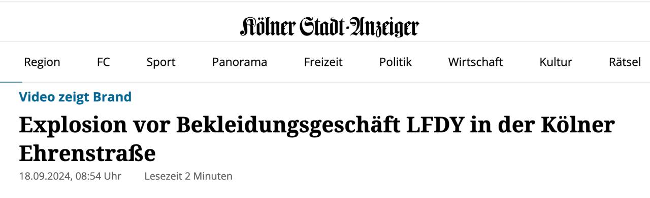 У німецькому Кельні сьогодні вранці знову пролунав вибух перед магазином одягу.