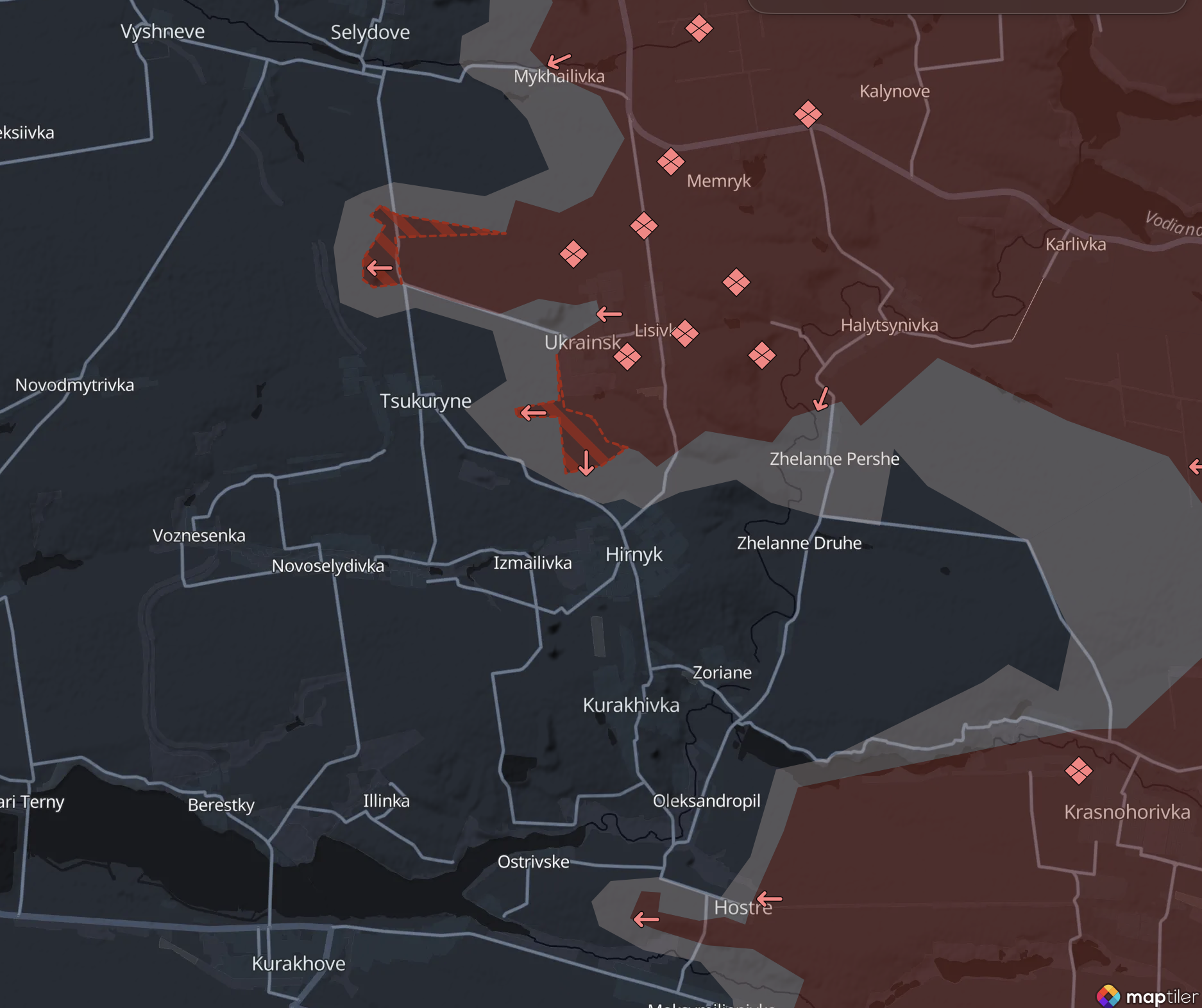 Ряд пабліків пишуть, що бої йдуть уже й у самому Цукуриному, куди прорвалися російські війська (але поки що підтверджень цьому немає). У разі захоплення Цукуріно російські війська зможуть рухатися на південь до Курахового, на захід від основної лінії укріплень ЗСУ у Гірнику та на південь від нього.