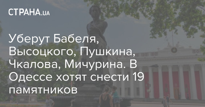 Приберуть Бабеля, Висоцького, Пушкіна, Чкалова, Мічуріна. В Одесі хочуть знести 19 пам'ятників