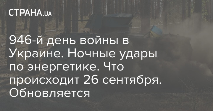 У четвер, 26 вересня, в Україні триває 946-й день війни з Росією.