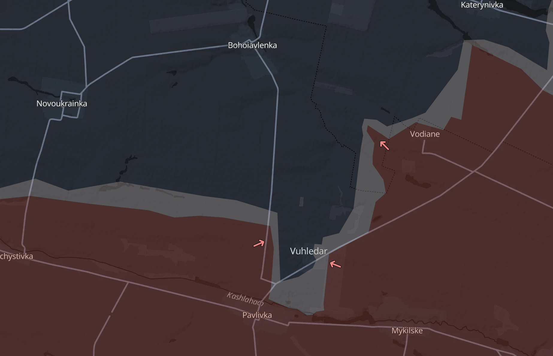 Російські паблики пишуть, що бої точаться вже в центральних кварталах Вугледару. Це підтверджує український боєць із позивним "Мучним". За його словами, з Вугледару на північ ще залишається ґрунтова дорога, але вона знаходиться під вогневим контролем росіян і прострілюється з обох боків.