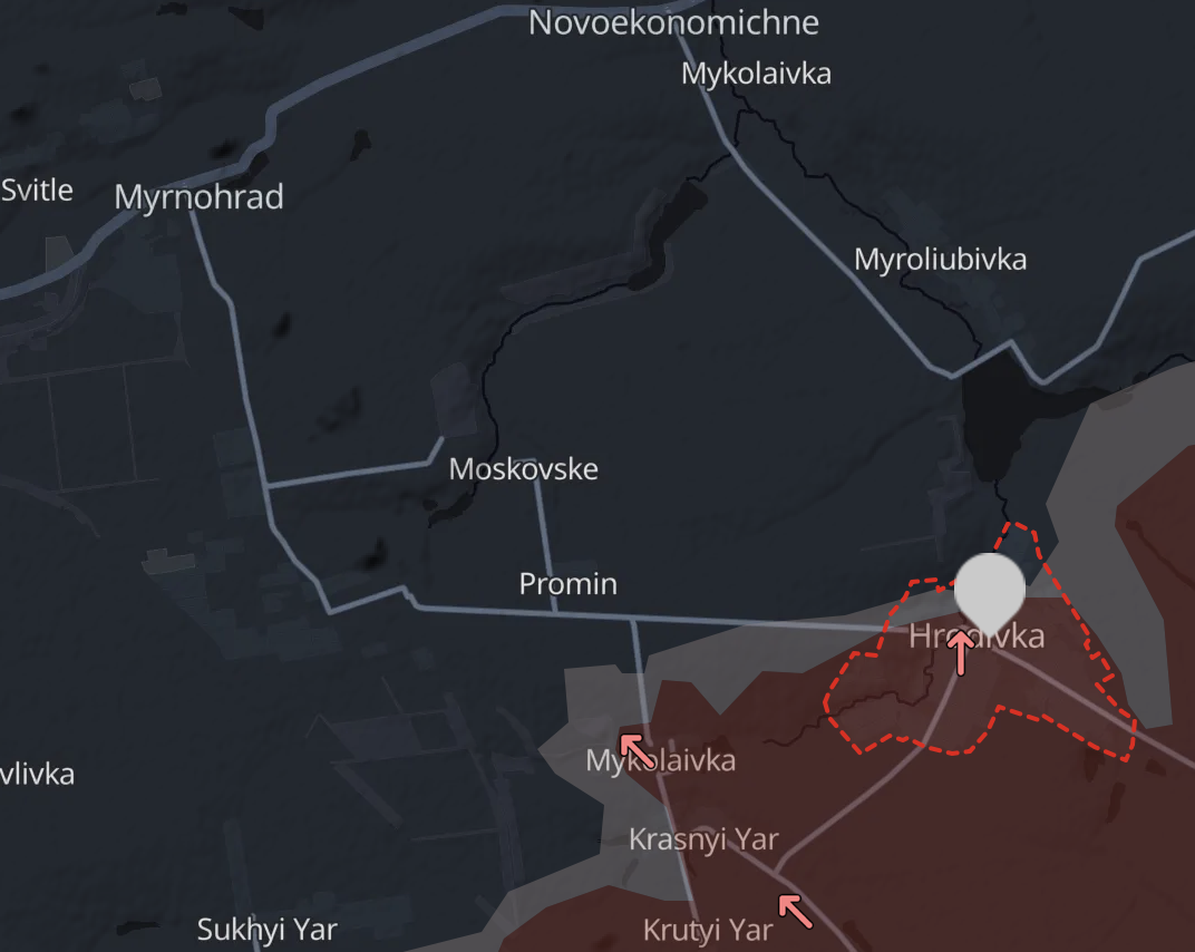 Міноборони Росії заявило сьогодні про захоплення Гродівки - селища на Покровському напрямку, розташованого на південний схід від Мирнограда.