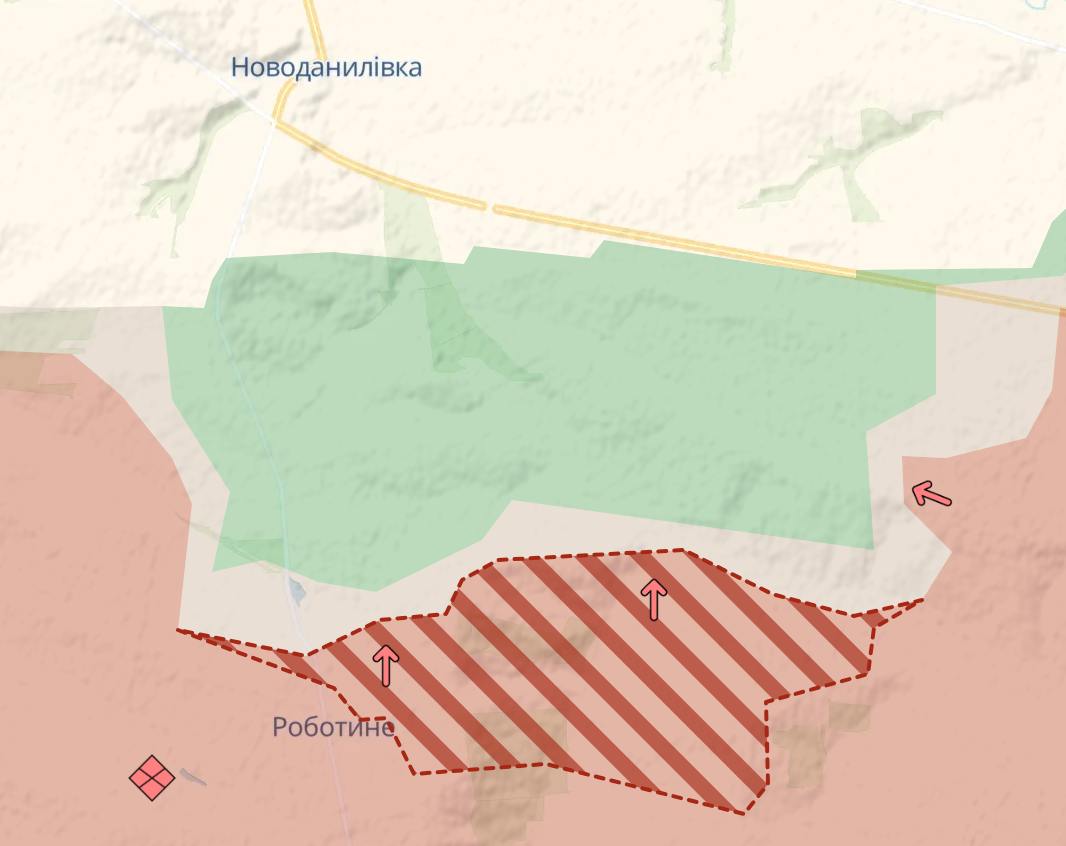 Так, уперше за довгий час у росіян є успіхи під Роботиним у Запорізькій області. Там було суттєве просування широким фронтом у бік Новоданилівки, де влітку 2023 контрнаступали ЗСУ.