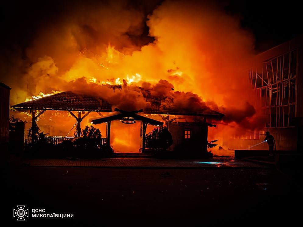 Пошкоджено інфраструктурний об'єкт, ресторанний комплекс, торгові павільйони, житлові будинки та автомобілі. Ідуть пожежі, повідомили в обласній військовій адміністрації.