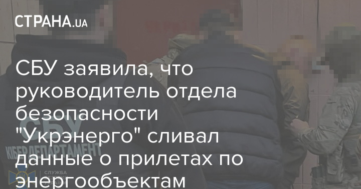 СБУ заявила, що керівник відділу безпеки "Укренерго" зливав дані про прильоти по енергооб'єктах