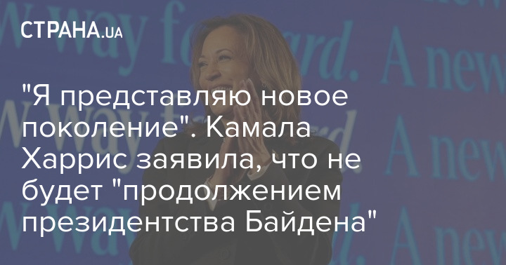 "Моє президентство не буде продовженням президентства Джо Байдена, і, як і кожен новий президент, який вступає на посаду, я привнесу свій життєвий досвід, свій професійний досвід, а також нові та нові ідеї. Я представляю нове покоління лідерів", - відповіла Харріс..