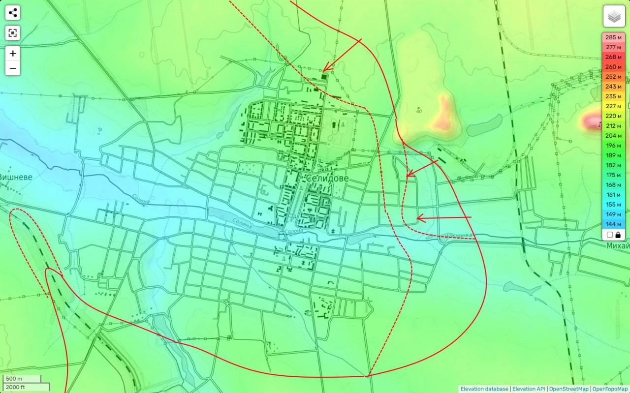 Військові паблики з обох сторін пишуть, що російські війська просуваються одноповерховою забудовою Селидово, тоді як основний укріпрайон ЗСУ в місті спирається на центральні квартали багатоповерхівок (з іншого боку, до повноцінного штурму багатоповерхівок у тому ж Вугледарі справа не дійшла, оскільки ВСУ залишили місто під загрозою оточення).