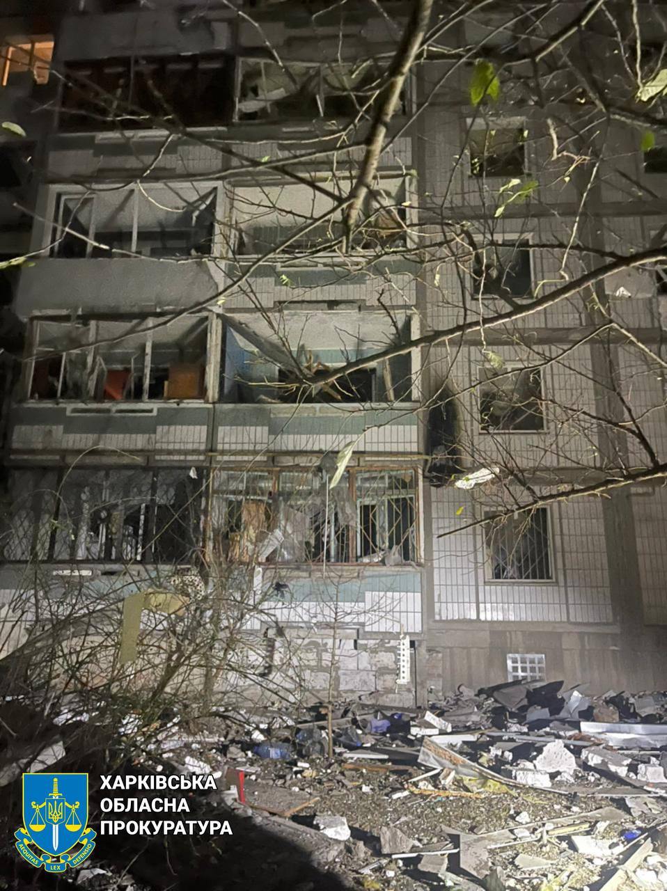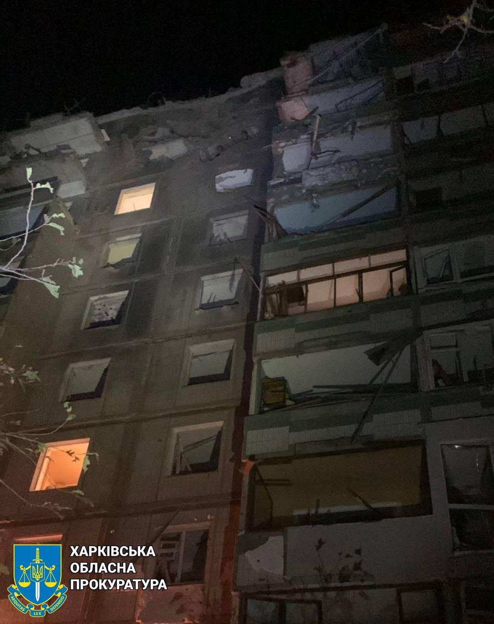 07:47 Вночі був приліт у Холодногірському районі Харкова. Постраждали семеро людей, а також багатоквартирний будинок.