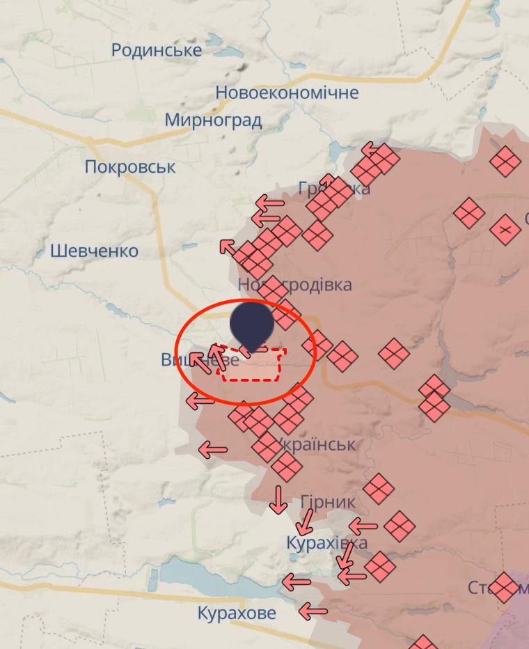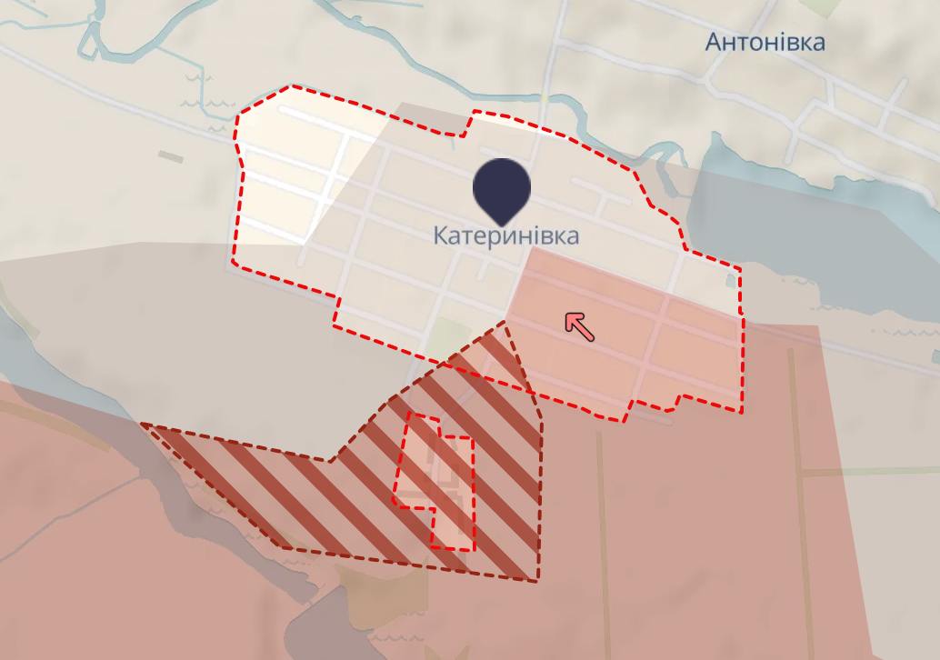 А ось Катеринівка, що на схід від Вугледару, поки що здебільшого знаходиться в сірій зоні, але зафіксовано, що російські війська до неї увійшли.