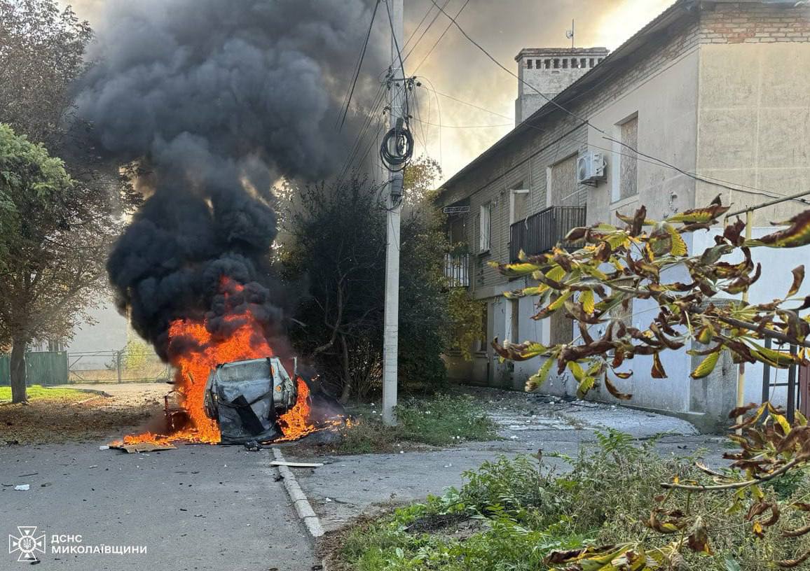 18.41 В Очакові Миколаївської області внаслідок артобстрілу спалахнув автомобіль, повідомляє місцева влада.