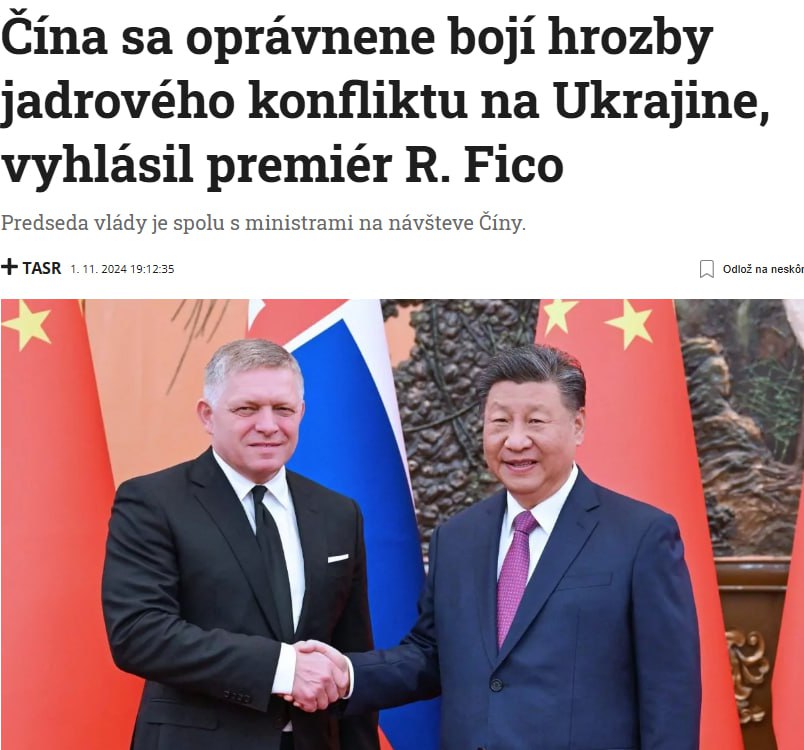 Після переговорів із китайським лідером Сі Цзіньпіном Фіцо заявив, що обидва лідери поділяють думку про "неможливість негайного припинення бойових дій, поки Україна продовжує отримувати військову та фінансову підтримку Заходу для продовження війни".